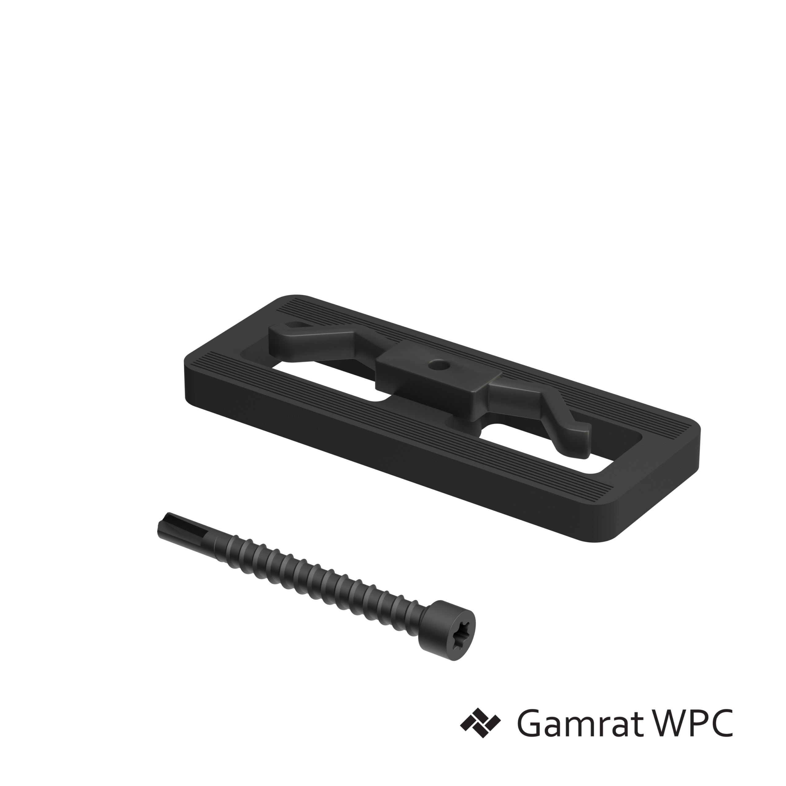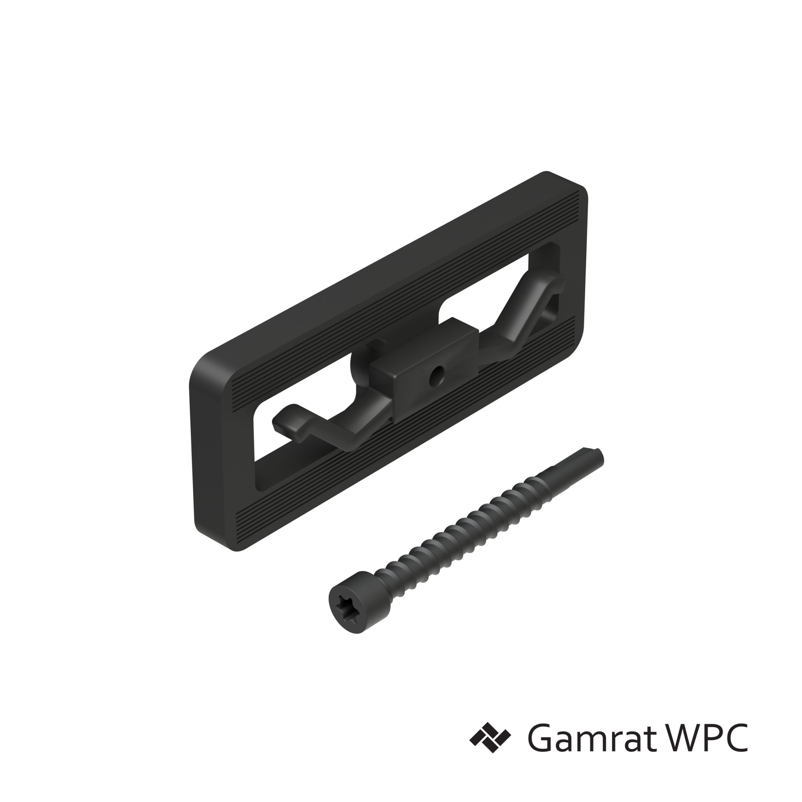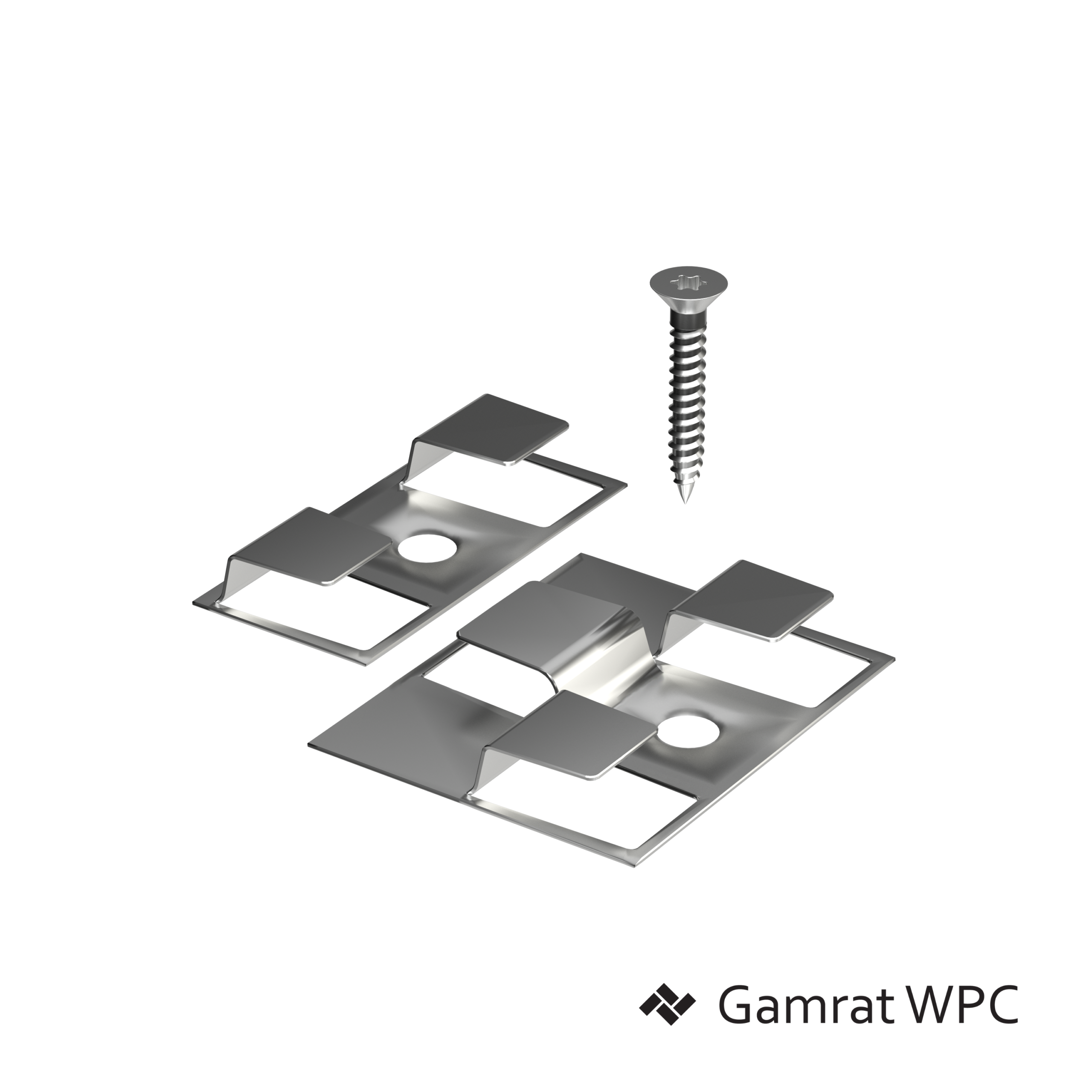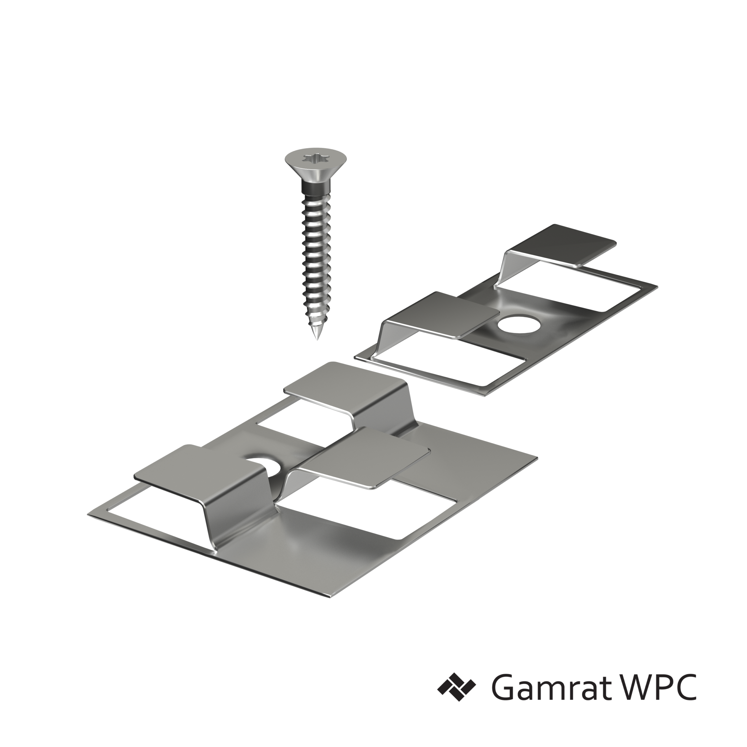 Zestawy montażowe GAMRAT składają się z wysokiej jakości klipsów i wkrętów, gwarantujących solidny i estetyczny montaż tarasów kompozytowych. Wykonane z polimerów.